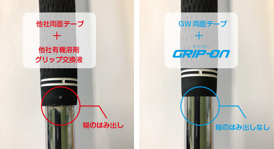 場所を選ばず、「GW両面テープ+GRIP-ON」をご使用いただけますと女性でも簡単にグリップを交換できます。