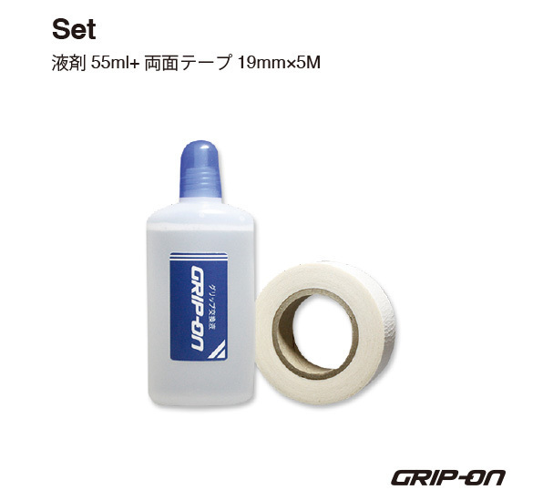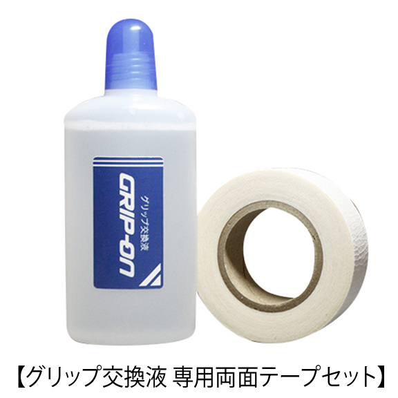 グリップ交換用水性液剤55ml+両面テープ小巻がセットになっております。
